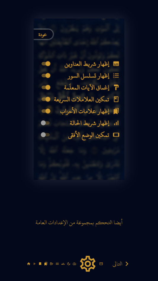 + إمكانية تحديد علامة "مواصلة القراءة" بالللمس المطول على علامات الآيات.