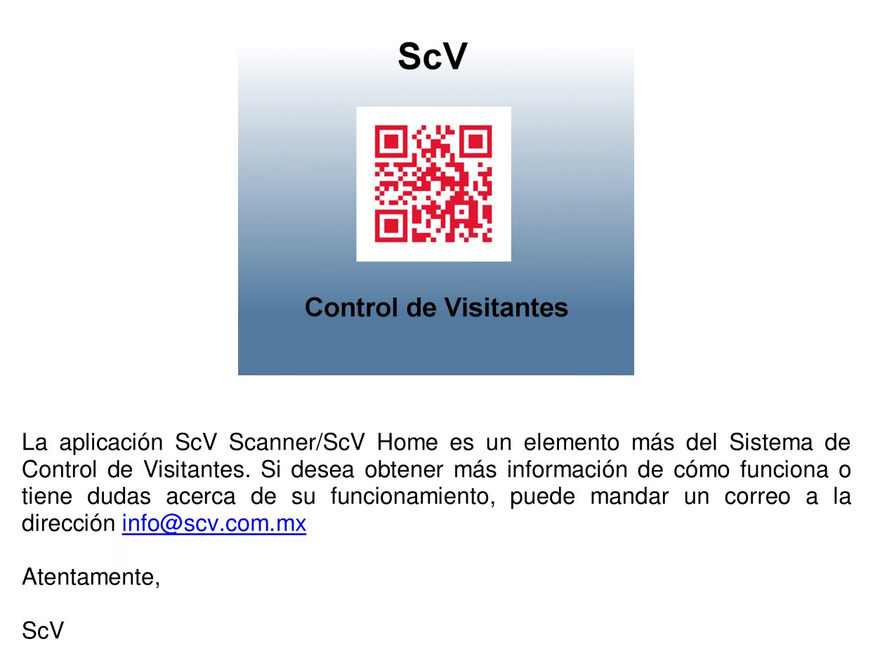 - Body: 0 + 0 Verze: 1.15 ScVHome forma parte de la solución integral del Sistema de Control de Visitantes. Nota: si su empresa o condominio no tiene contratados los servicios de ScV, la aplicación no tiene ... ⥯