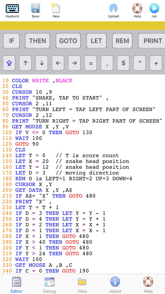 - Body: 0 + 7 (3.1) Verze: 2.0.1 Write BASIC code directly on your iPhone, iPad and iPod Touch! This app is ideal for learning and testing code snippets! BASIC (Beginner's All-purpose Symbolic Instruction Code) is a ... ⥯
