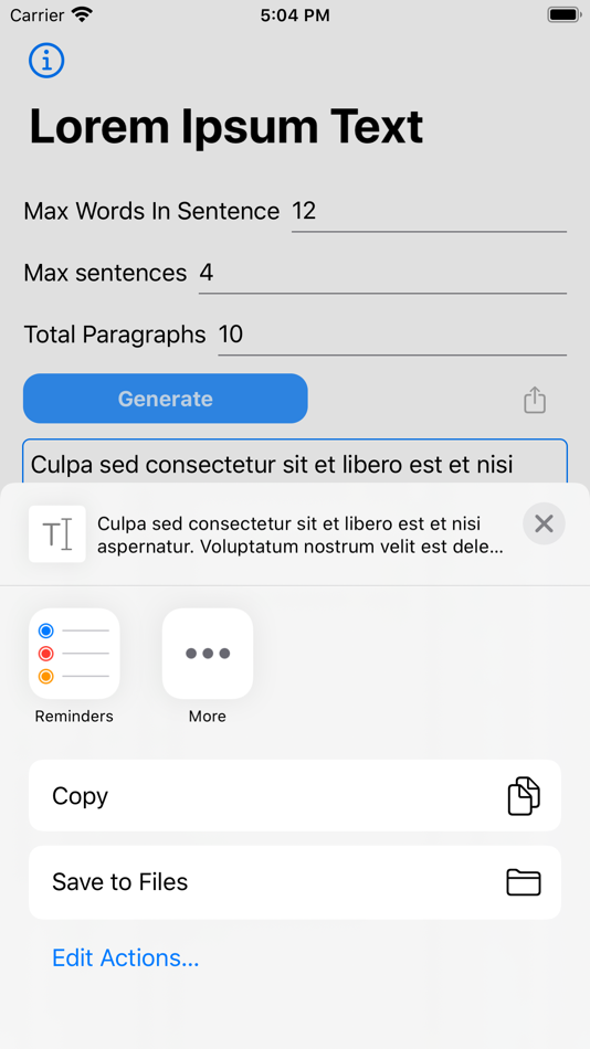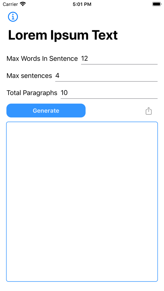 Get the exact amount of filler text you need with just a few taps!