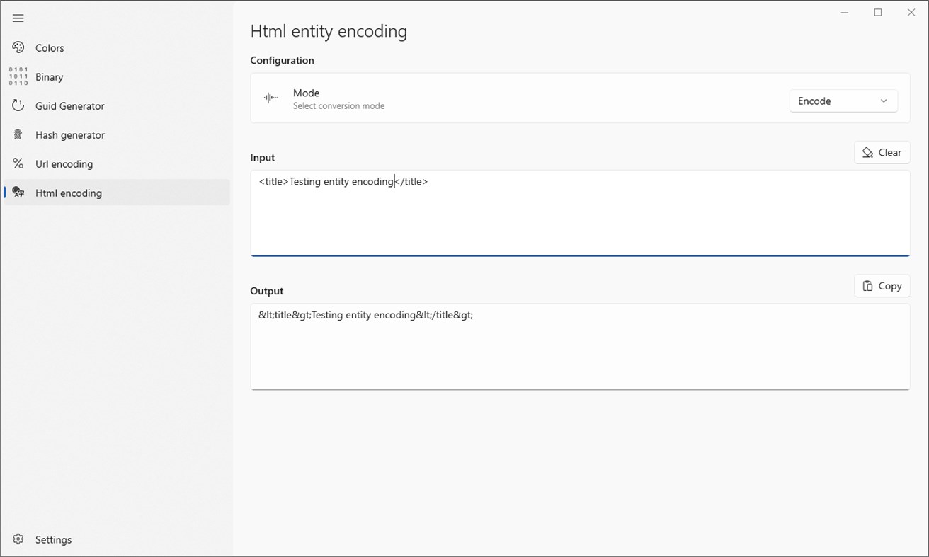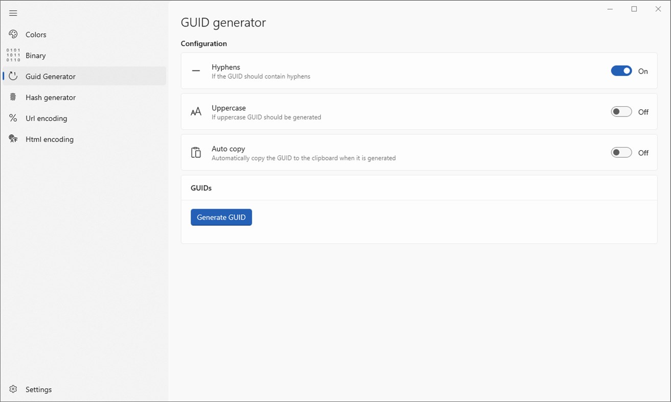 - Hash generator (MD5, SHA-1, SHA-256, SHA-384, SHA-512)