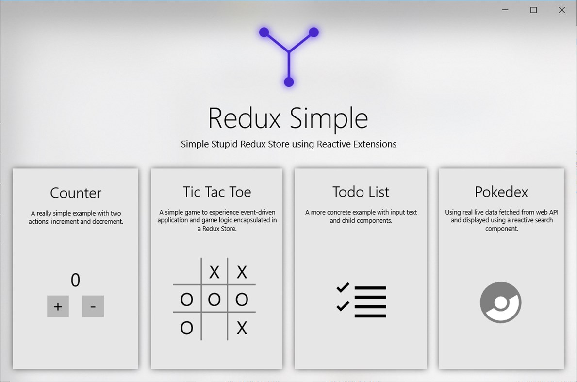 This app is a sample app that will show you concrete examples on how to use ReduxSimple and how to make .NET apps using the Redux patern.